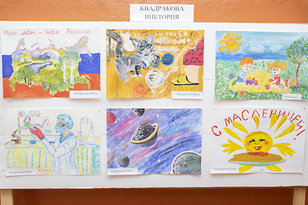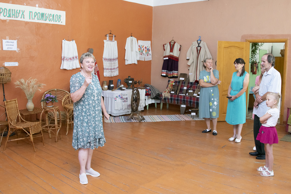 На выставке представлены экспонаты краеведческого музея Калининской школы, работы из лозы Владимира Нятина, вязаные изделия Ольги Нятиной, алмазная мозаика и вышивка Ирины Пирожковой, рисунки Виктории Квадраковой.